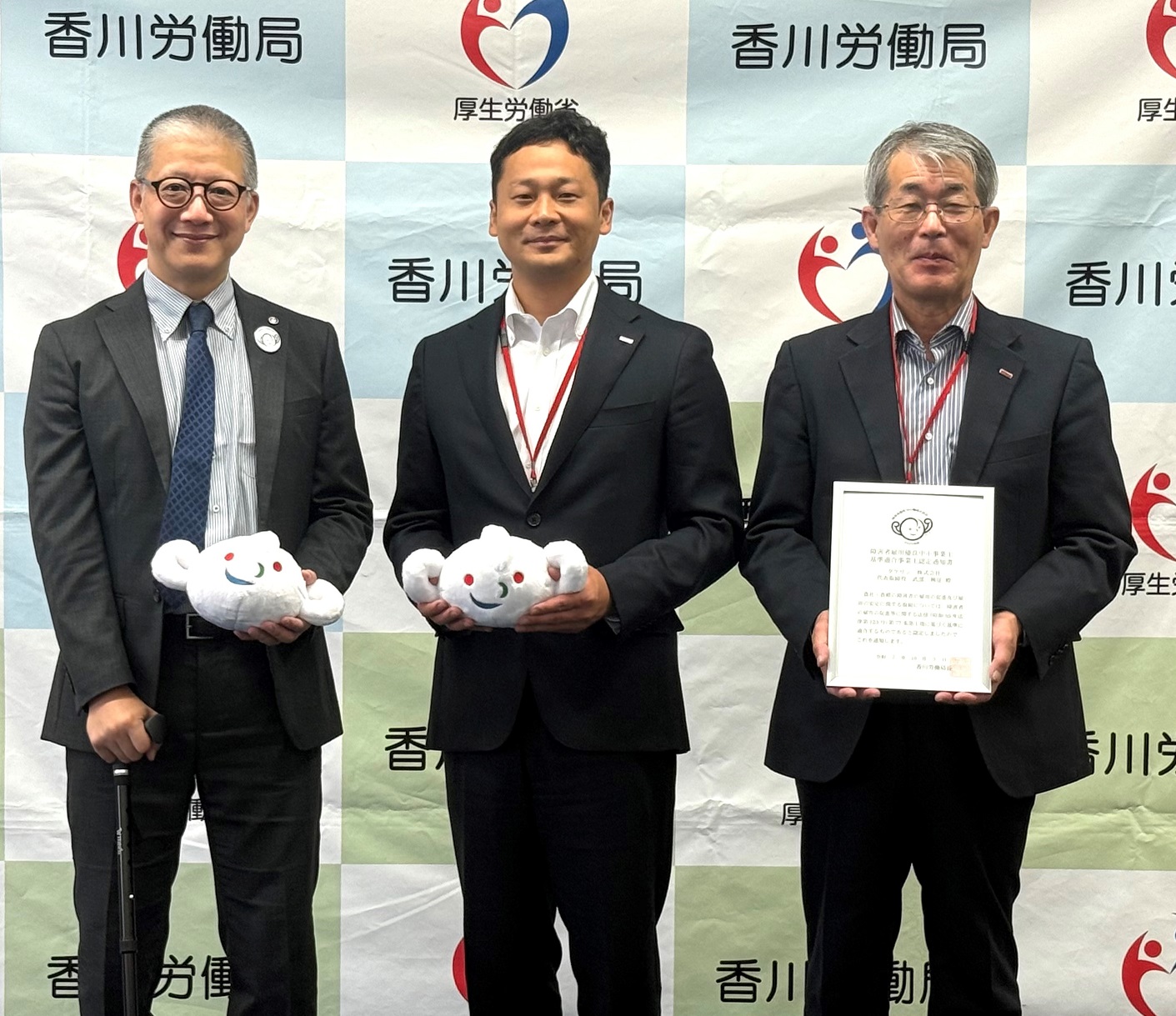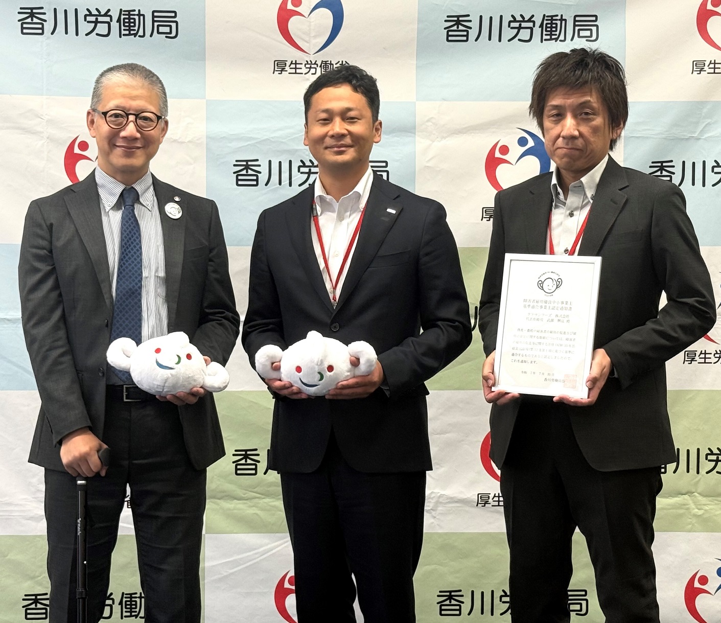 2025年10月30日に行なわれた認定通知書交付式では、弊社代表取締役と2社の人事担当者が出席し、香川労働局長様より認定証を頂きました。