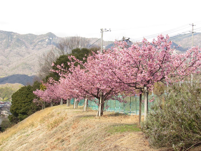 ※国道沿いの土手の木も満開です。農園にお越しになる際は、この桜並木が目印です。